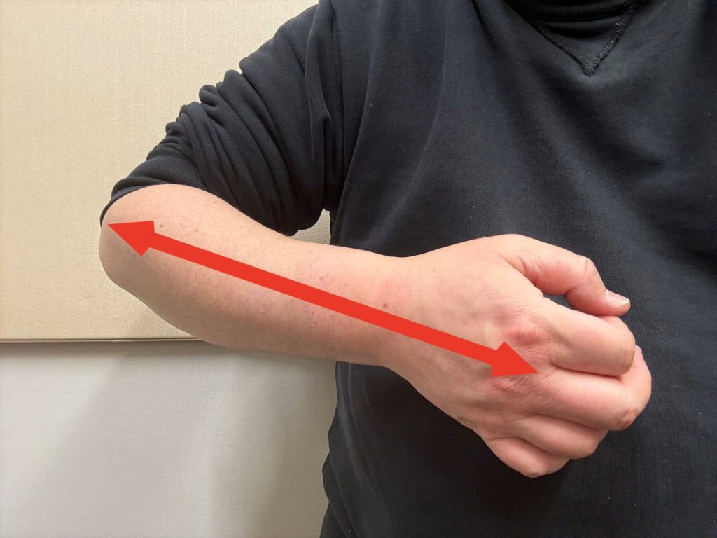 右手の肘の位置は固定し、手首はもうダルンダルンに動かしてみましょう。