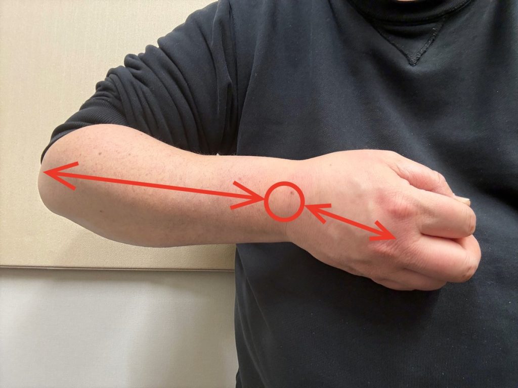 まずは肘を支点にして弾く方法。