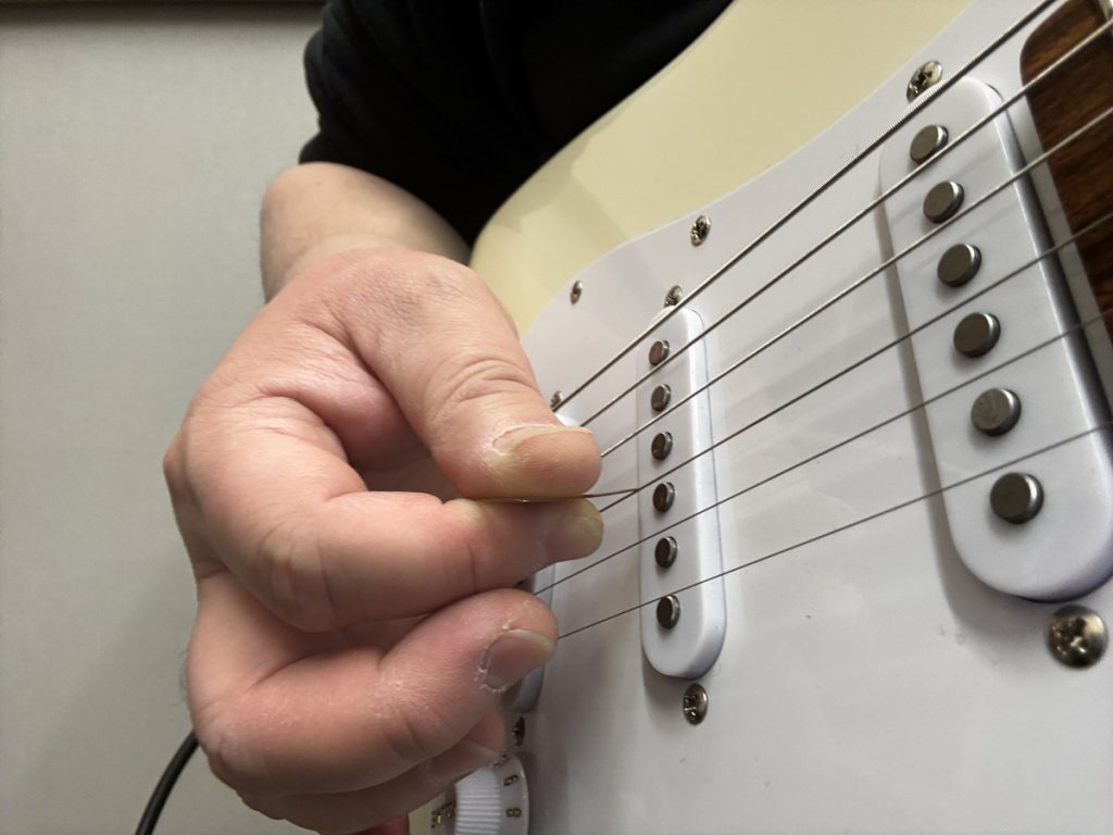 ちなみに逆アングルピッキングは抵抗が強く始めは難しいですが、これも出したい音とシチュエーションによって効果が絶大なのでゆくゆくできるようになるといいかもしれません。
