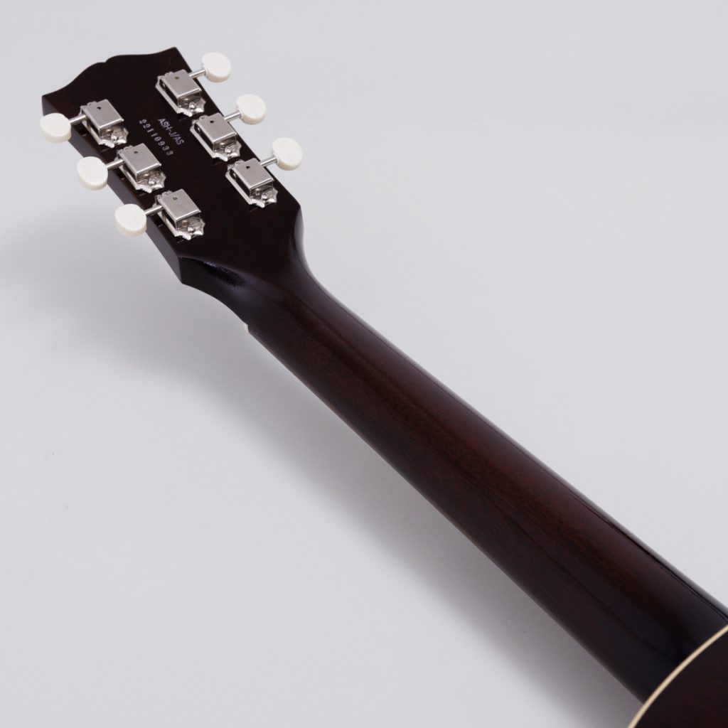 ボディトップには、トリファイド加工を施したアディロンダック・スプルース材を使用。ヴィンテージギター特有の乾いたトーンを演出します。また、どのポジションでも握りやすいネック、やや低めに設定された弦高など、演奏性に優れています。