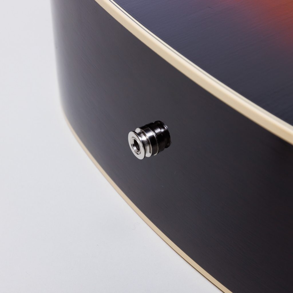 音質や音域のバランスに定評があるフィッシュマン製ピックアップを搭載。ボリュームとトーンの2コントロールがサウンドホール上部に取り付けられており、ライブやレコーディングの際の操作性も抜群です。