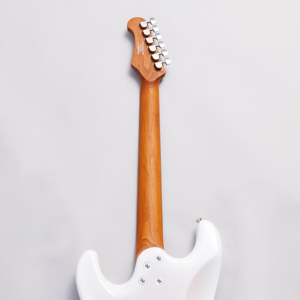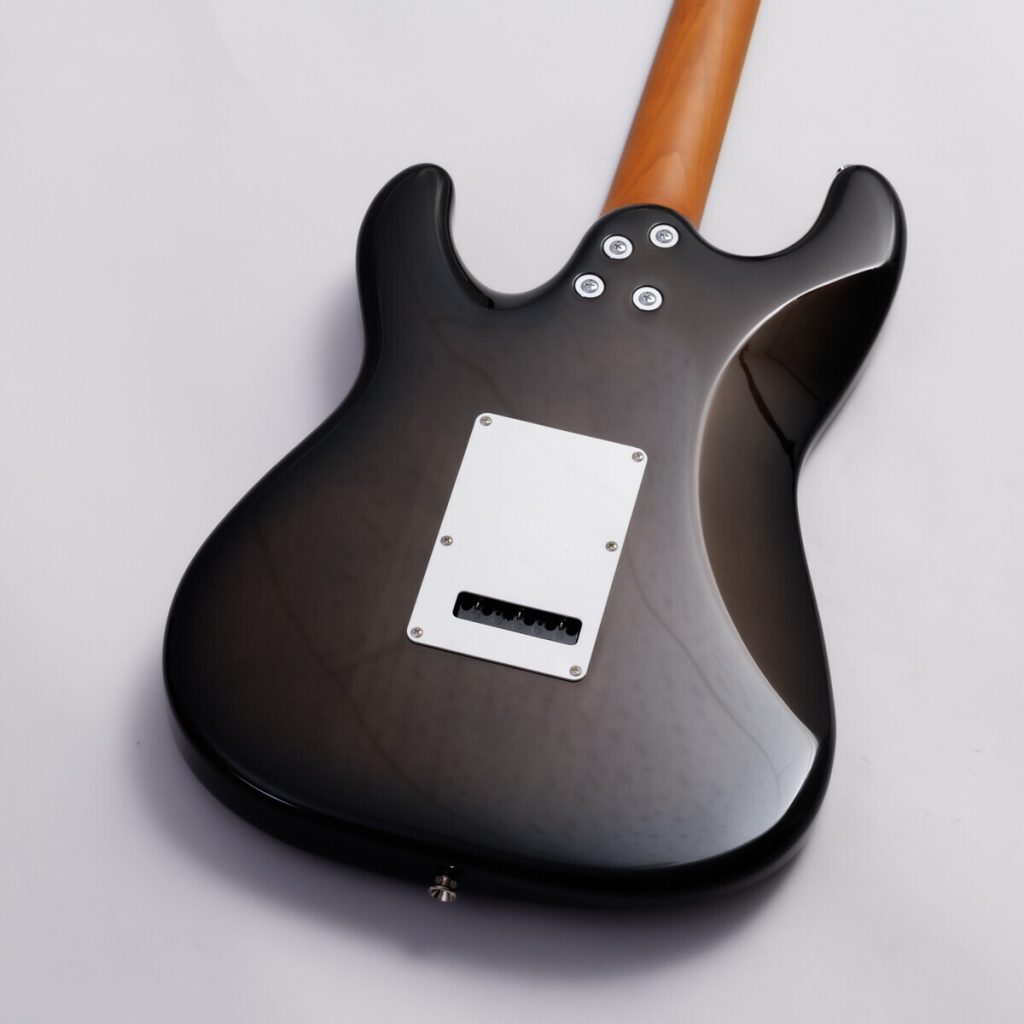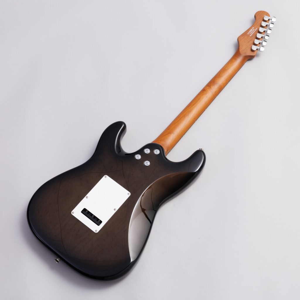 ピックアップはキレのあるシングルコイルとパワフルなハムバッカーをSSH配列で搭載し、様々なジャンルに対応できるサウンドに。ネック形状は握りやすさを追求し、CシェイプとUシェイプの中間に設計。手汗でベタつきにくいようさらさらな触り心地のマット仕上げを採用しました。ネック材には加熱処理により耐久性を高めたベイクド・メイプルを使用。さらにカーボン製サポートロッドを埋め込むことで反りやねじれに強い楽器に仕上げました。