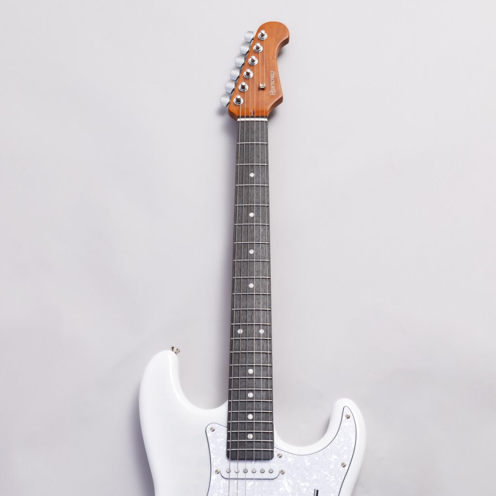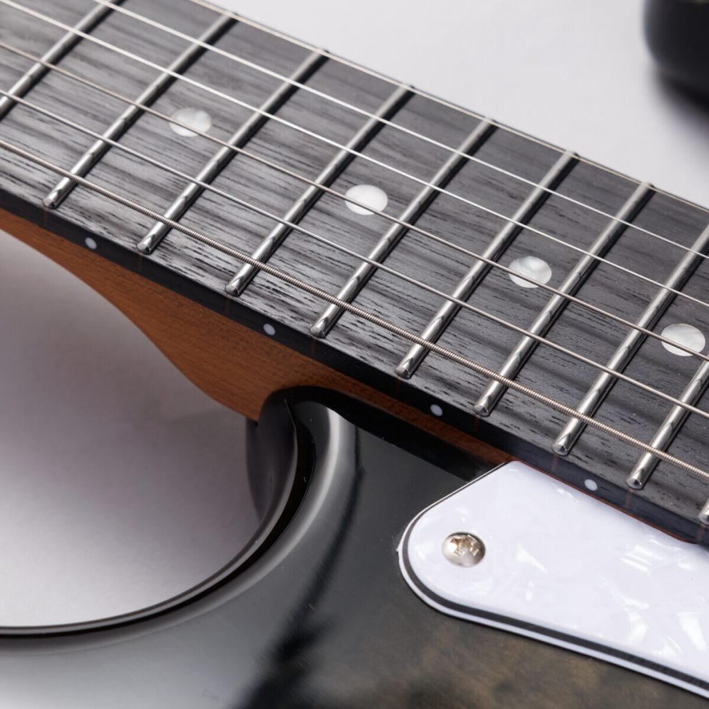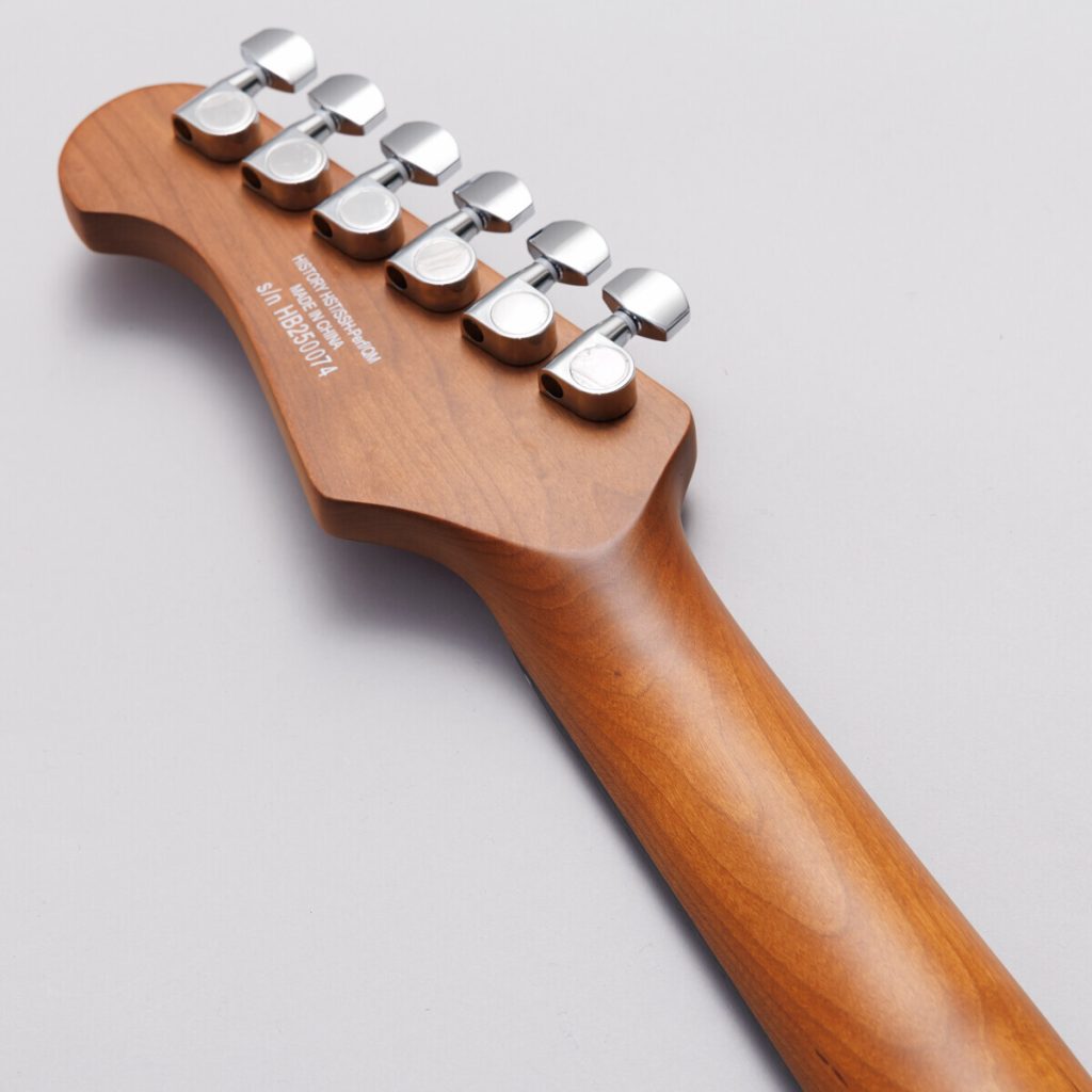 ピックアップはキレのあるシングルコイルとパワフルなハムバッカーをSSH配列で搭載し、様々なジャンルに対応できるサウンドに。ネック形状は握りやすさを追求し、CシェイプとUシェイプの中間に設計。手汗でベタつきにくいようさらさらな触り心地のマット仕上げを採用しました。ネック材には加熱処理により耐久性を高めたベイクド・メイプルを使用。さらにカーボン製サポートロッドを埋め込むことで反りやねじれに強い楽器に仕上げました。