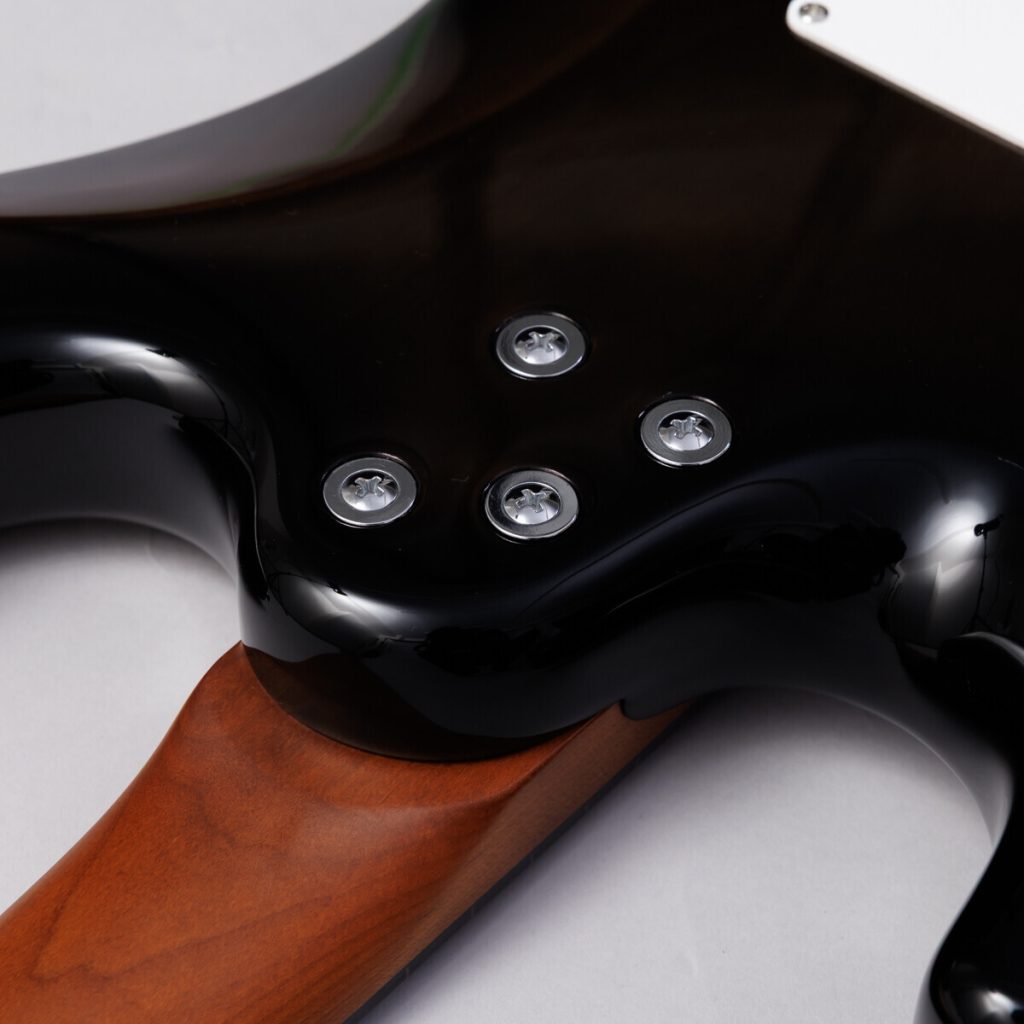 プレートを使わず、接合部分を滑らかに加工することで、ハイポジションの弾きやすさを追求したネックジョイント形式を採用しました。