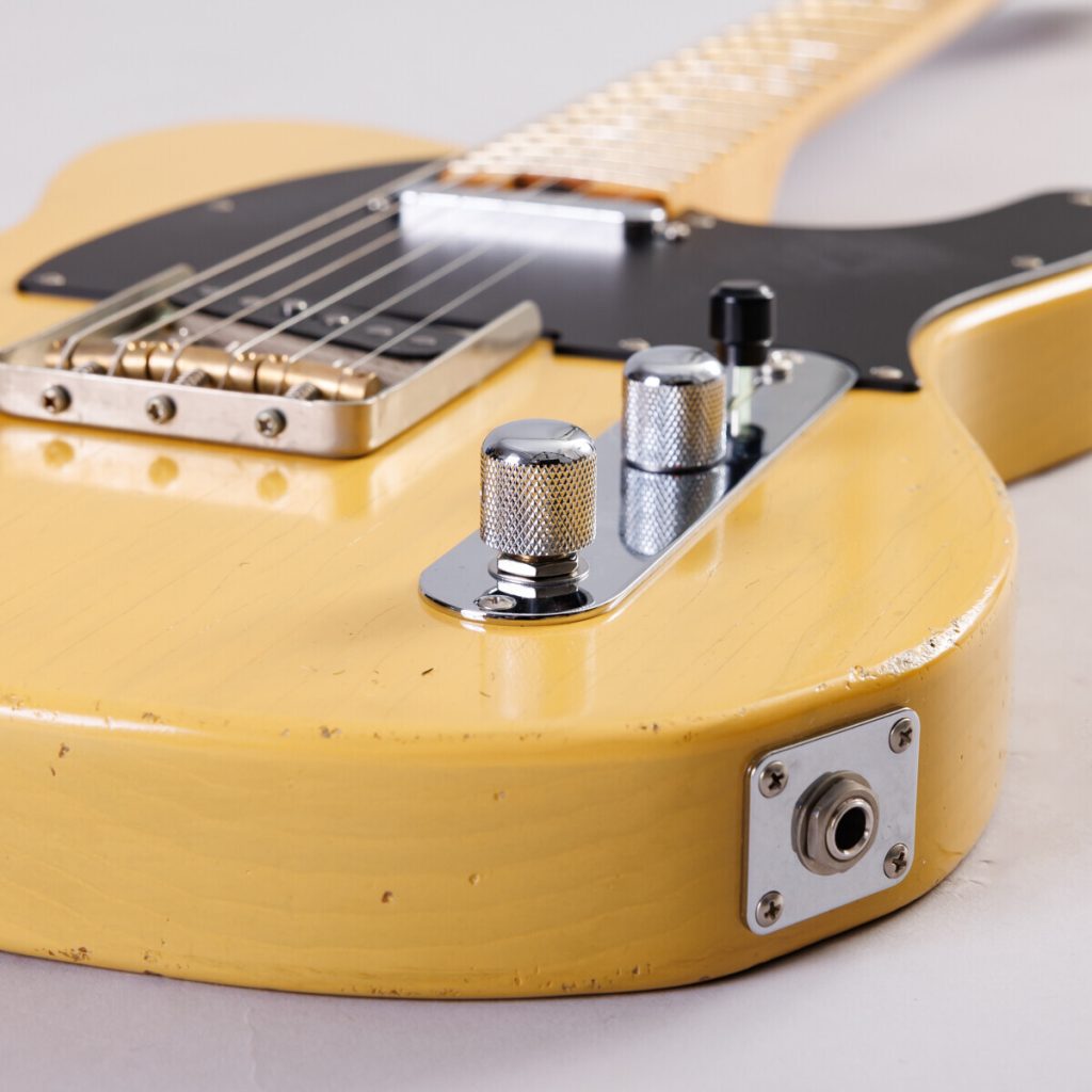 トーンノブを引き上げることで前後のシングルコイルが直列になり、2つのピックアップが一つのハムバッカーとして機能します。ギターソロ時など、ここ一発でパワー感が欲しいときにこのトーンノブを引くことで出力が増してドライブ感あるサウンドに変化します。