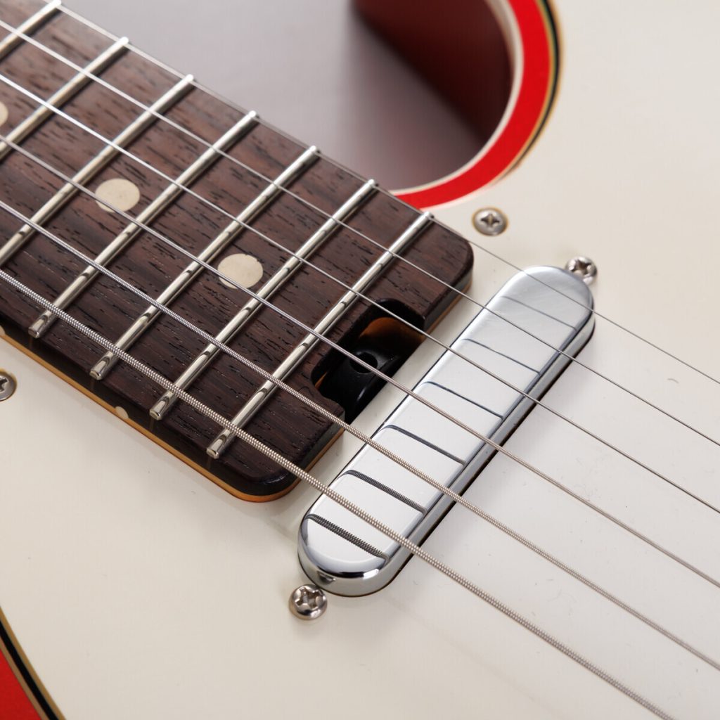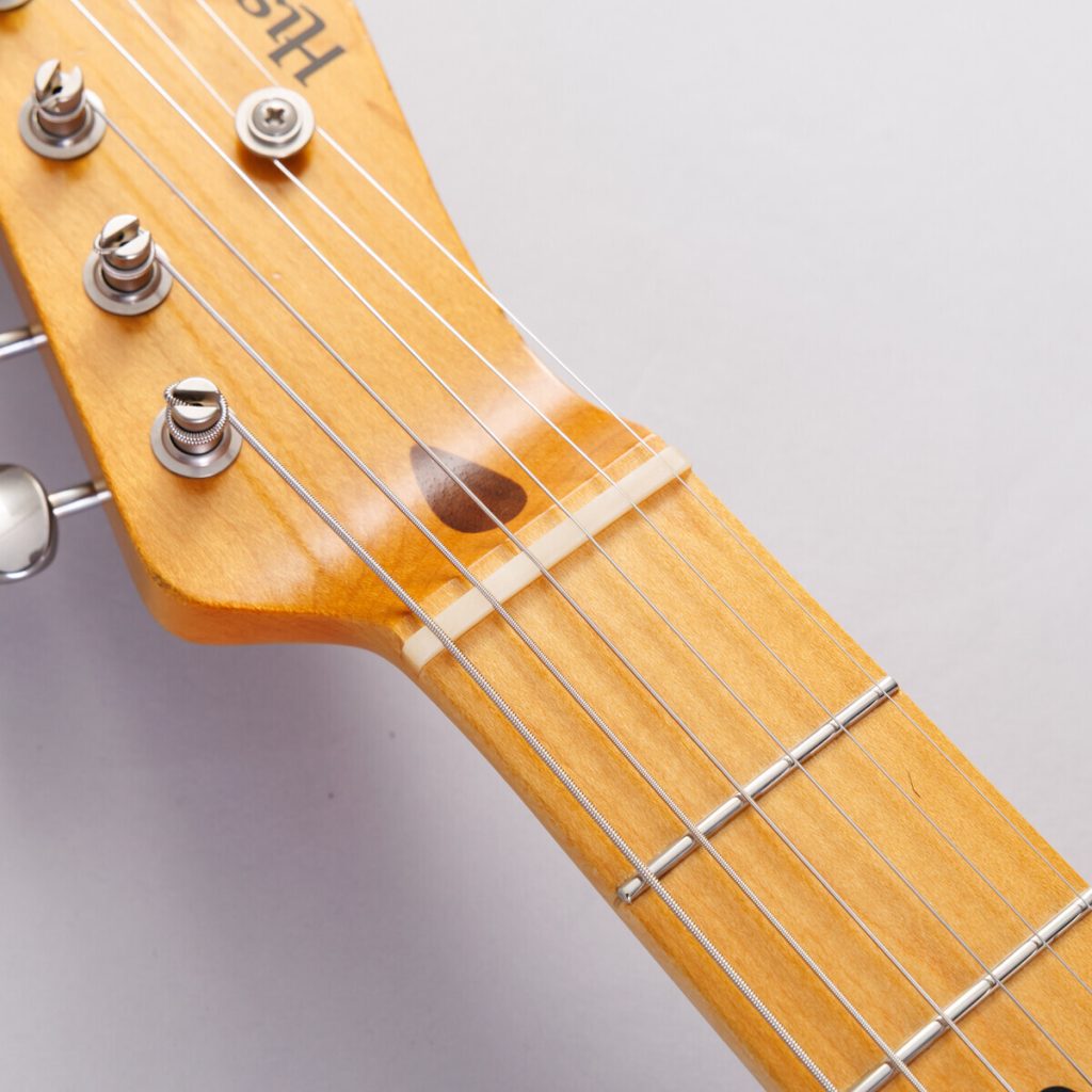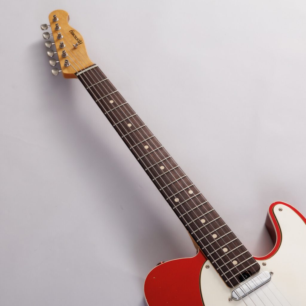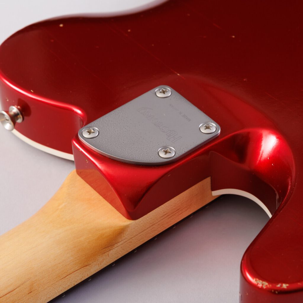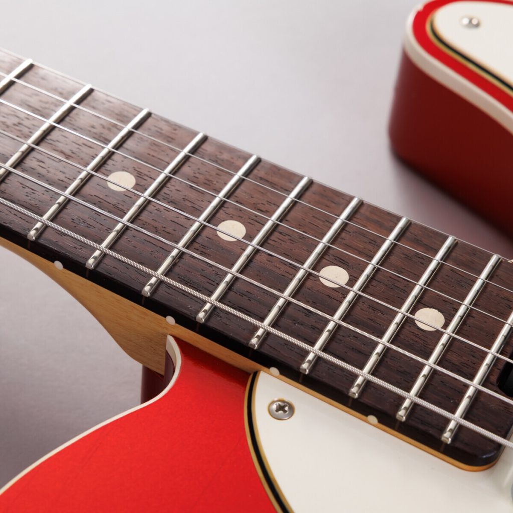 やや弦長が短く指が届きやすい”ミディアムスケール”を採用。これに伴いボディ寸法も一回り小さく設計しなおしていますが、ルックスにはこだわっておりヴィンテージギターと比較しても見た目では違和感を与えない絶妙なサイズでデザインしました。実際に持ってみて軽さとコンパクトさを感じてください。
