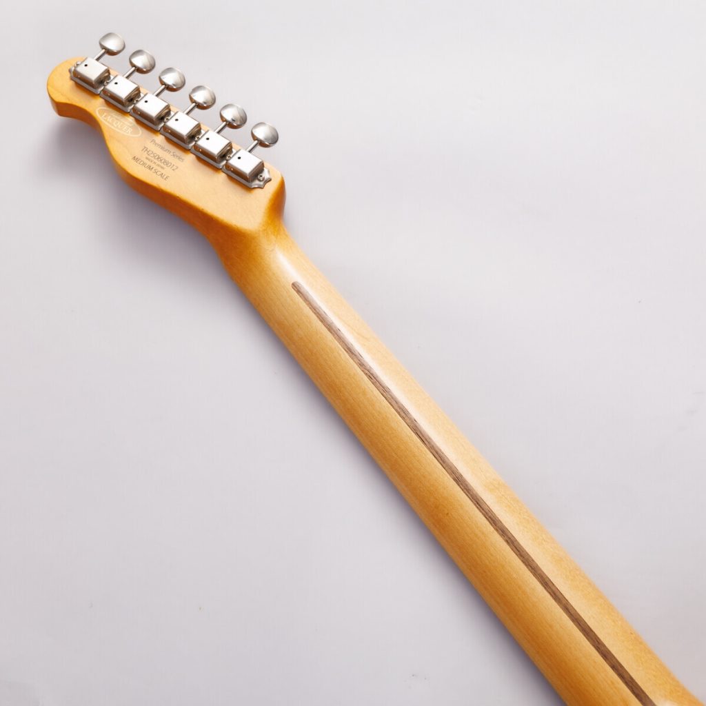 ネックの反りを調整するトラスロッドはホイールアジャスト方式。ネックを外さずにチューニングしたまま調整できる利便性の高さが特長です。またナット周りに適度な参考重量を確保することで、ネック鳴りを生かす設計になっています。