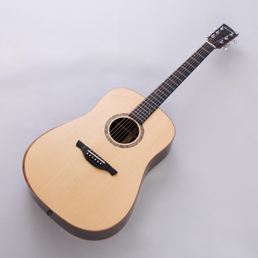 スプルース・アフリカンマホガニーのオール単板ラージボディによる豊かな鳴りと、抱えやすさが魅力のエレアコギター