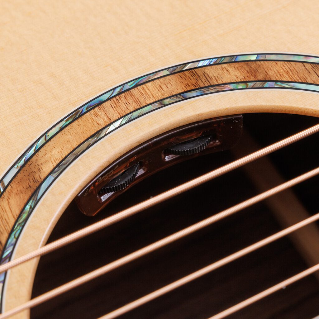 スプルース・ローズウッドのオール単板ラージボディによる豊かな鳴りと、抱えやすさが魅力のエレアコギター