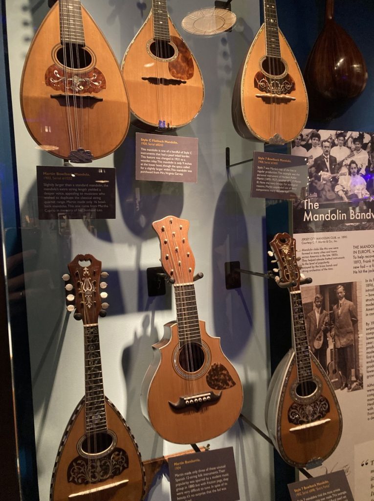 こちらには創業間もない1834年製“シュタウハー・スタイル”のギター(左画像)や、19世紀末から20世紀初頭にブームを巻き起こしMartin社を支えたマンドリン(同右)を展示。