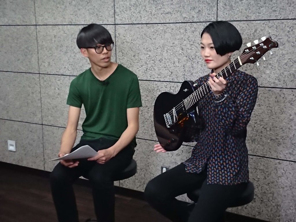 栗山さんには自身初の製品レビュー撮影と、デモンストレーション用オリジナル曲の制作をして頂きました。そのオリジナル曲には使用するギターの特徴を活かすよう、1分弱の持ち時間の中にクリーンからクランチ、歪みまで織り込み、バッキングからリードまでのプレイを入れるのはなかなか難しいと思います。この大変な作曲、そして撮影までの緊張で寝不足の日々が続いたということです。栗山さん本当に有難うございました!