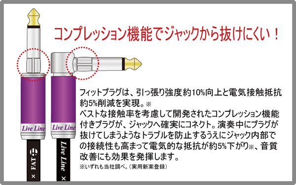 「フィットプラグ」と呼ばれる機構を備えています。LIVE-GYM2015に向け、そのロングツアーにも耐えうる耐久性を想定しています。このツアーに向けて、それまでLive Lineではストレートしかなかったフィットプラグに、L型が緊急開発されたとの事です。