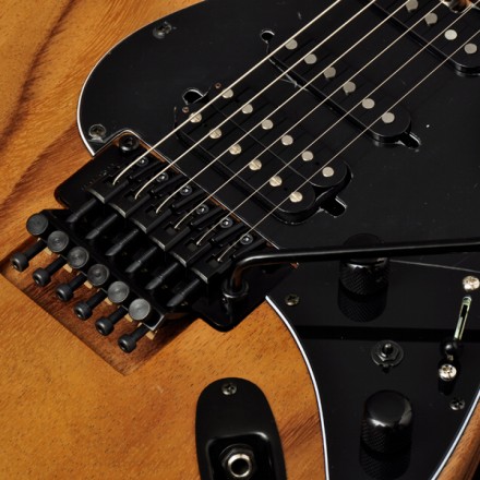 フロイドローズトレモロを搭載し、激しいアーミングでも安定したチューニングを実現。S-S-Hピックアップレイアウト+コイルタップスイッチ仕様で、ジャンルを問わず幅広いサウンドメイクが可能です。