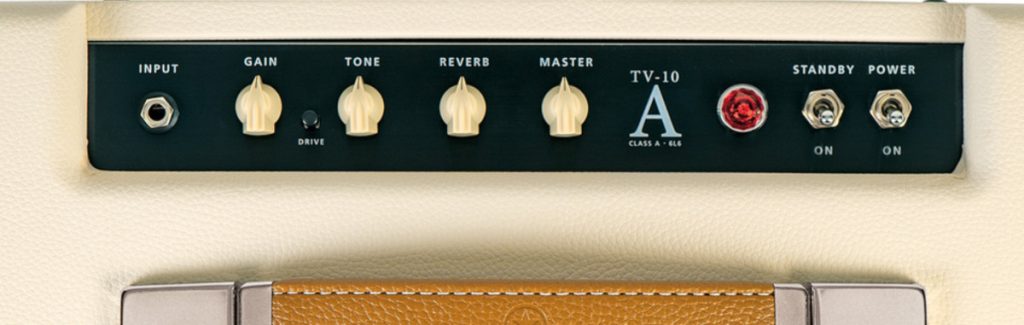 TV-10 A アンプは、クラシックなアメリカン・アンプの影響を受けた 6L6 パワー真空管を搭載しており、特徴的なブライトなクリーン・サウンドと、マスター・ボリュームで強くプッシュしたときの自然なコンプレッションを伴うホットなリード・トーンを生み出します。