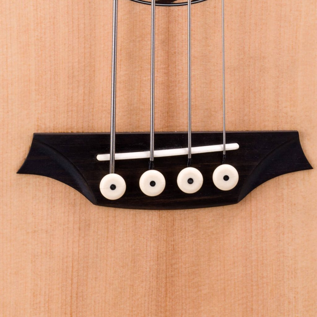 ベース弦特有の強いテンションを均等に受け止めるため、大型設計のブリッジが用いられており、トップとブレーシング全体でテンションを受ける構造とすることで、安定したチューニングと豊かな音量感につなげています。