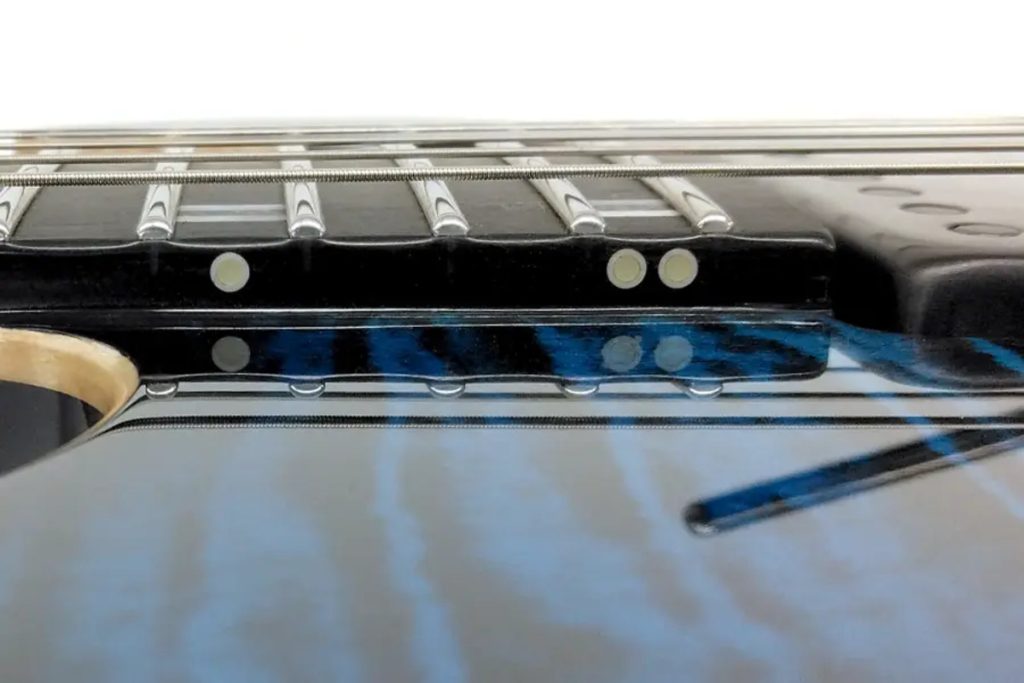 ポジションマークは表側にMOPと人工素材を組み合わせたダブルストライプインレイ、サイドに蓄光素材Luminlayが採用され、暗いステージ環境でも視認性を確保できます。