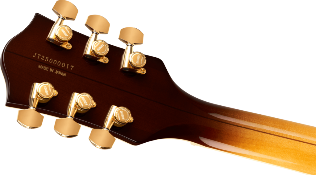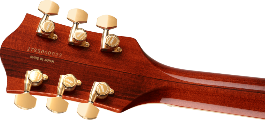 ポジションマークにはパーロイドNeo-Classic™サムネイルインレイが採用され、視認性とGretschらしいデザイン性を兼ね備えています。