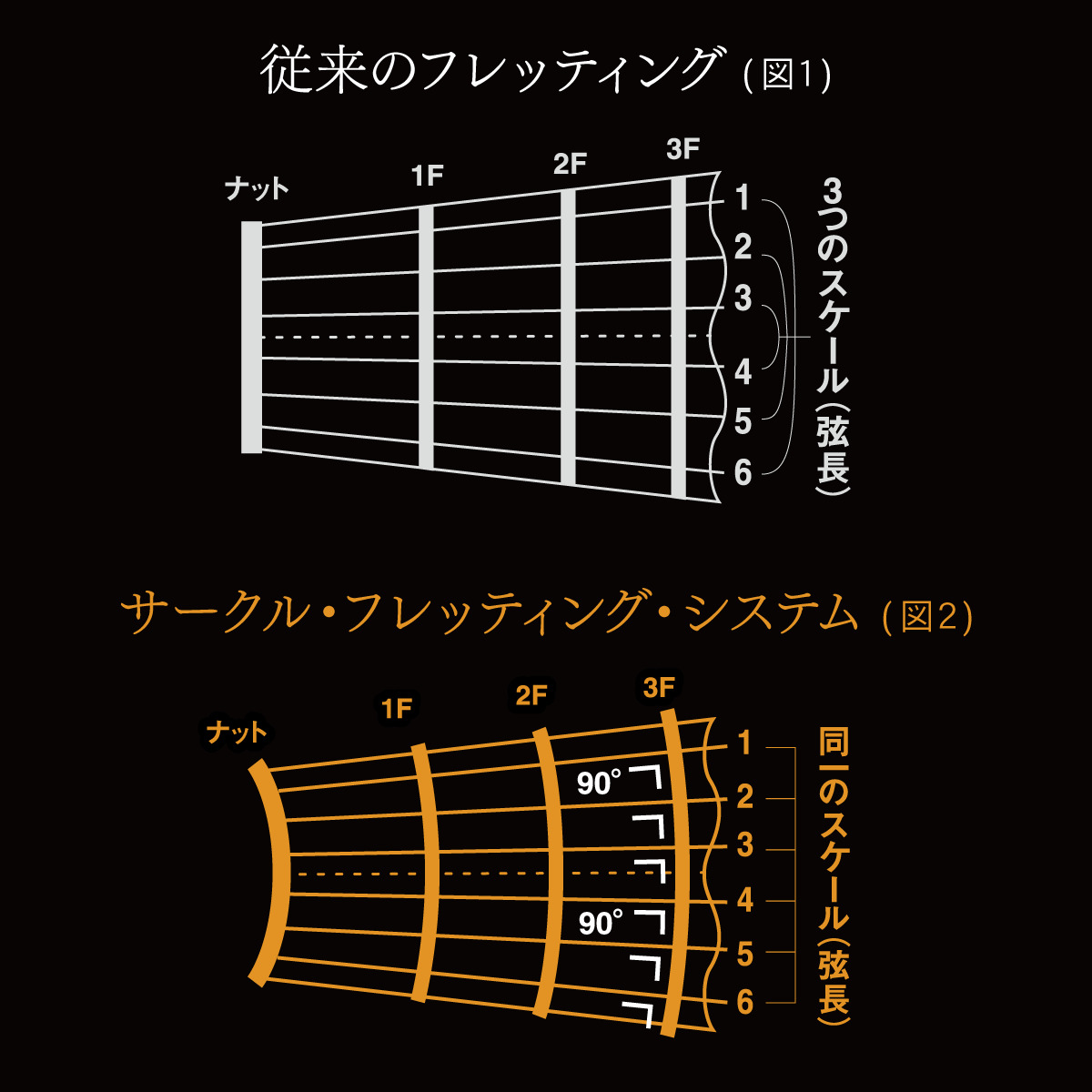フレットと弦の接点が直角となることで、明瞭な音程感と優れた音抜けを実現。演奏時のニュアンスやピッチの精度がより際立ちます。