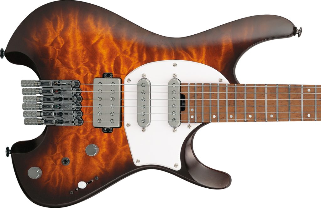 ピックアップには、Ibanezが本機のために設計した「R1」シングルコイルと「Q58」ハムバッカーを搭載。