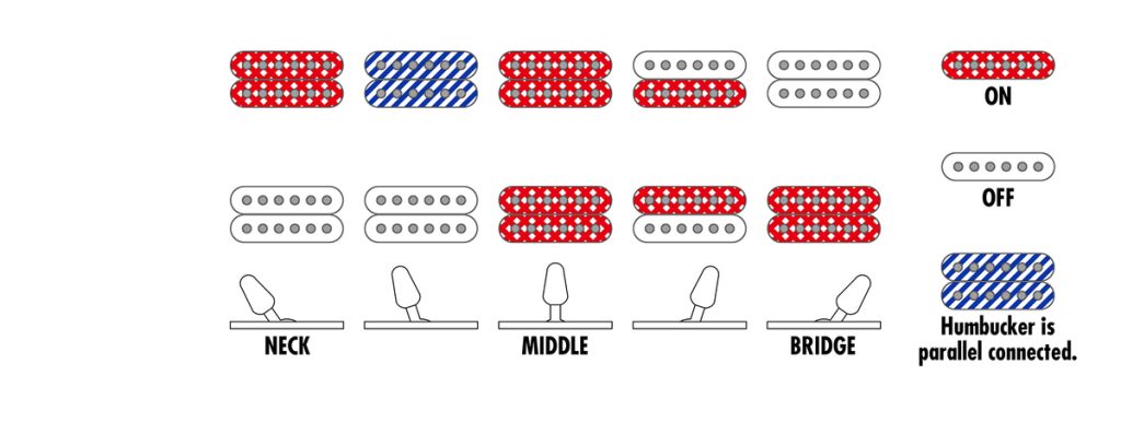 DiMarzio®ピックアップと5ウェイ配線による多彩なサウンド