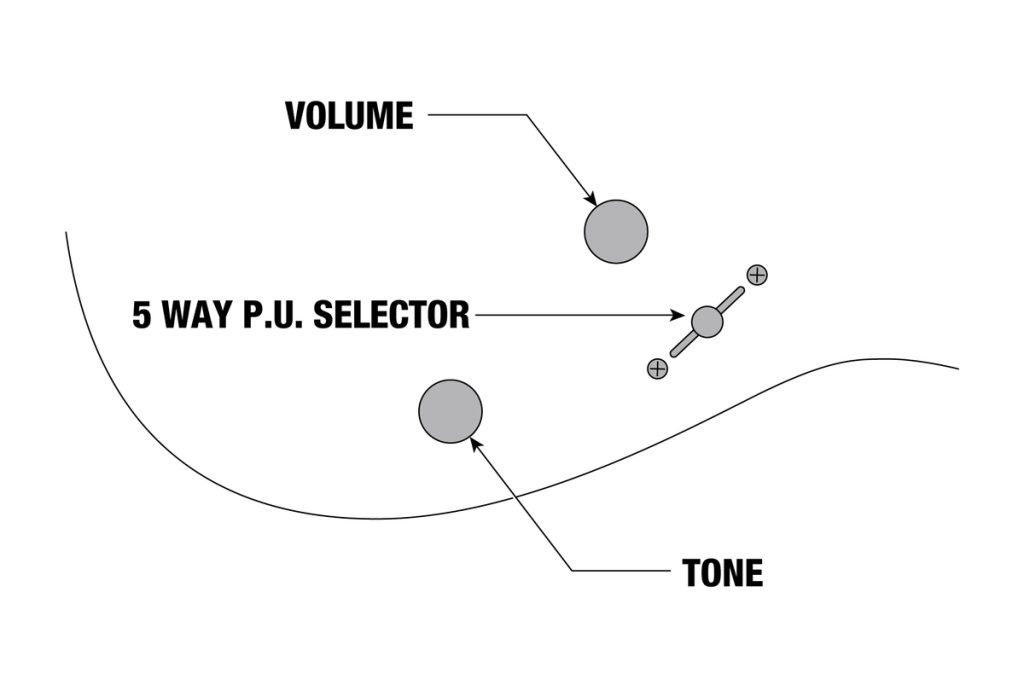 - Controls, Pickup selector: 1 Volume, 1 Tone, 5-way lever switch