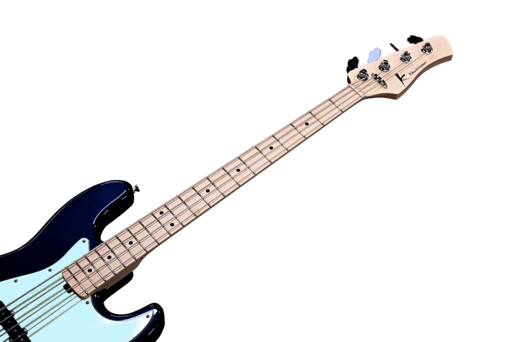 ネックはメイプルにマットなニトロセルロースフィニッシュ、指板にはメイプルを採用しており、明瞭なアタックと抜けの良さを備えた構成です。