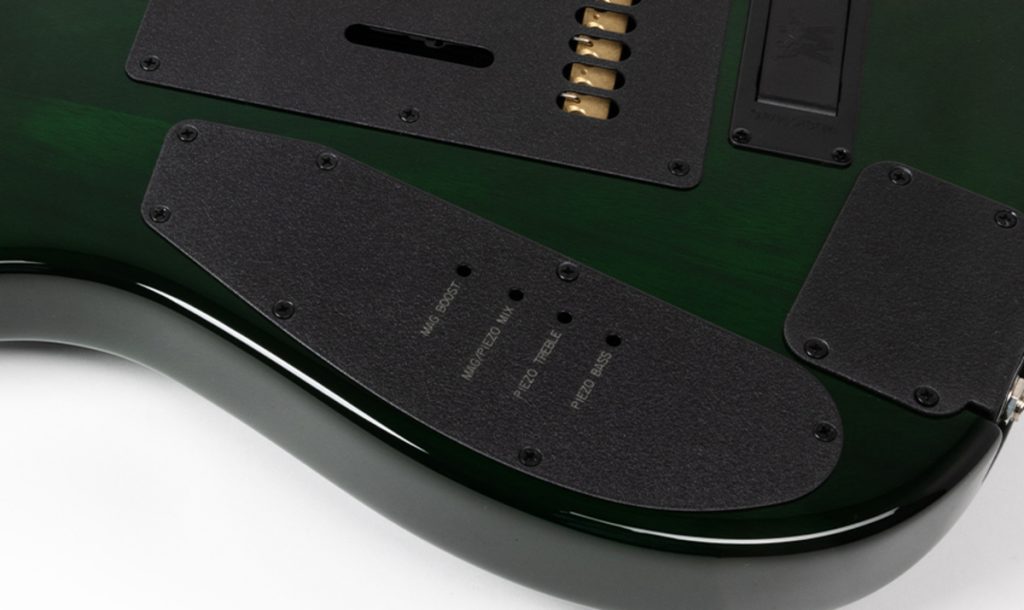 | Switching | 3-way toggle pickup selector, with custom center position configuration; 3-way toggle piezo/magnetic selector |