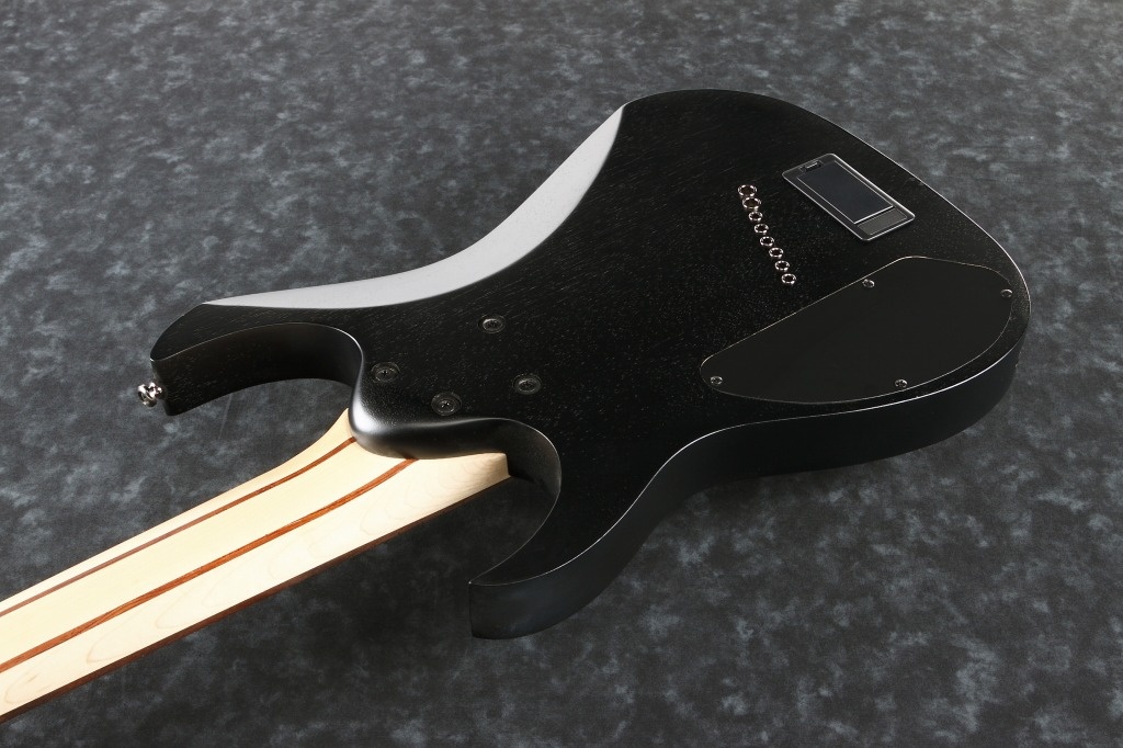 “RGIM7BC-DFF”は、ここ数年来メタル・シーンで注目を集め続けている1弦~7弦それぞれを異なるスケール長で設計した”マルチ・スケール”仕様。 1弦側で25.5インチ、7弦側で27インチに設定されています。扇形状にスケールが長くなるファンドフレット・システムにより、低音弦と高音弦側のテンション感がバランスされる事で絶妙なタッチ感の実現を目指しているとのこと。