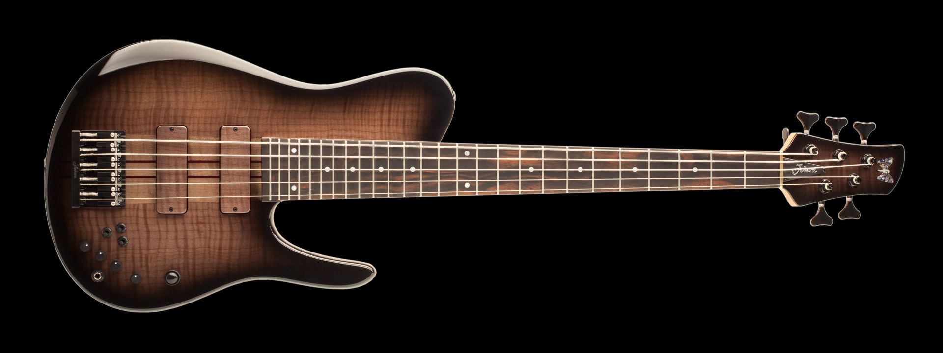Black Burst Imperial MG 5 Eliteは、カーリーメイプルをボディに採用したスルーネックタイプの5弦ベース。深みのある暗いローエンド、正確なミッドレンジ、ピアノのような高音域が大きな魅力です。