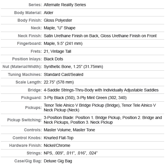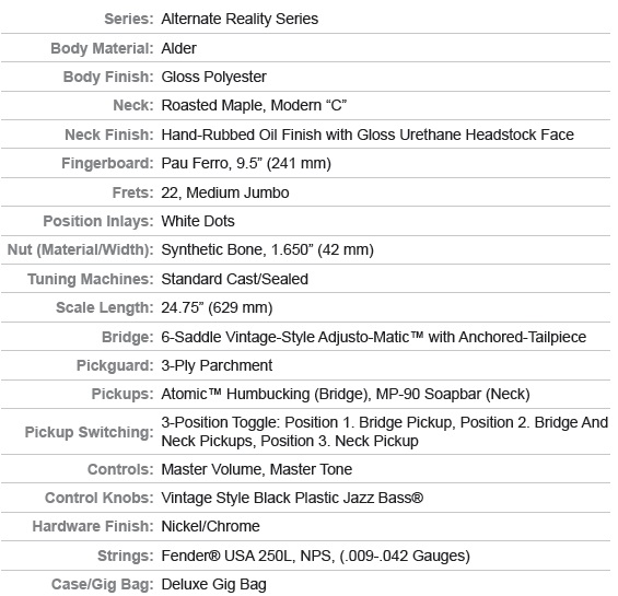 Powercasterは、フロントにソープバータイプシングルピックアップ、リアにAtomicハムバッカーを搭載した、バンドのミックスに埋もれないスケール感のあるエッジの効いたサウンドが特徴のモデル。ボディマテリアルはアルダー、ネックは「Modern C」シェイプのローステッドメイプルネックにパーフェロー指板を採用しています。さらにビンテージスタイルAdjusto-MaticブリッジとAnchoredテールピースを装備しています。