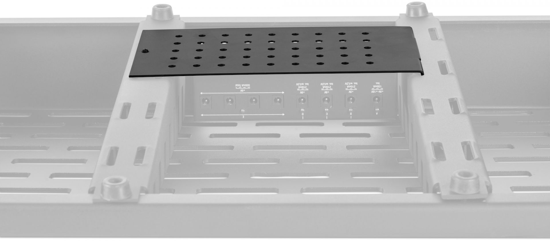 マルチ電源ユニット用の電源マウントソリューション。Duo 2.1を除くペダルボードの下に取り付け可能です。ペダルボードに穴を開ける必要なく、ネジ1本だけで簡単に固定。トレイの表面にある穴を通して、ケーブルタイなどを使用し電源ユニットを取り付ける事が出来ます。