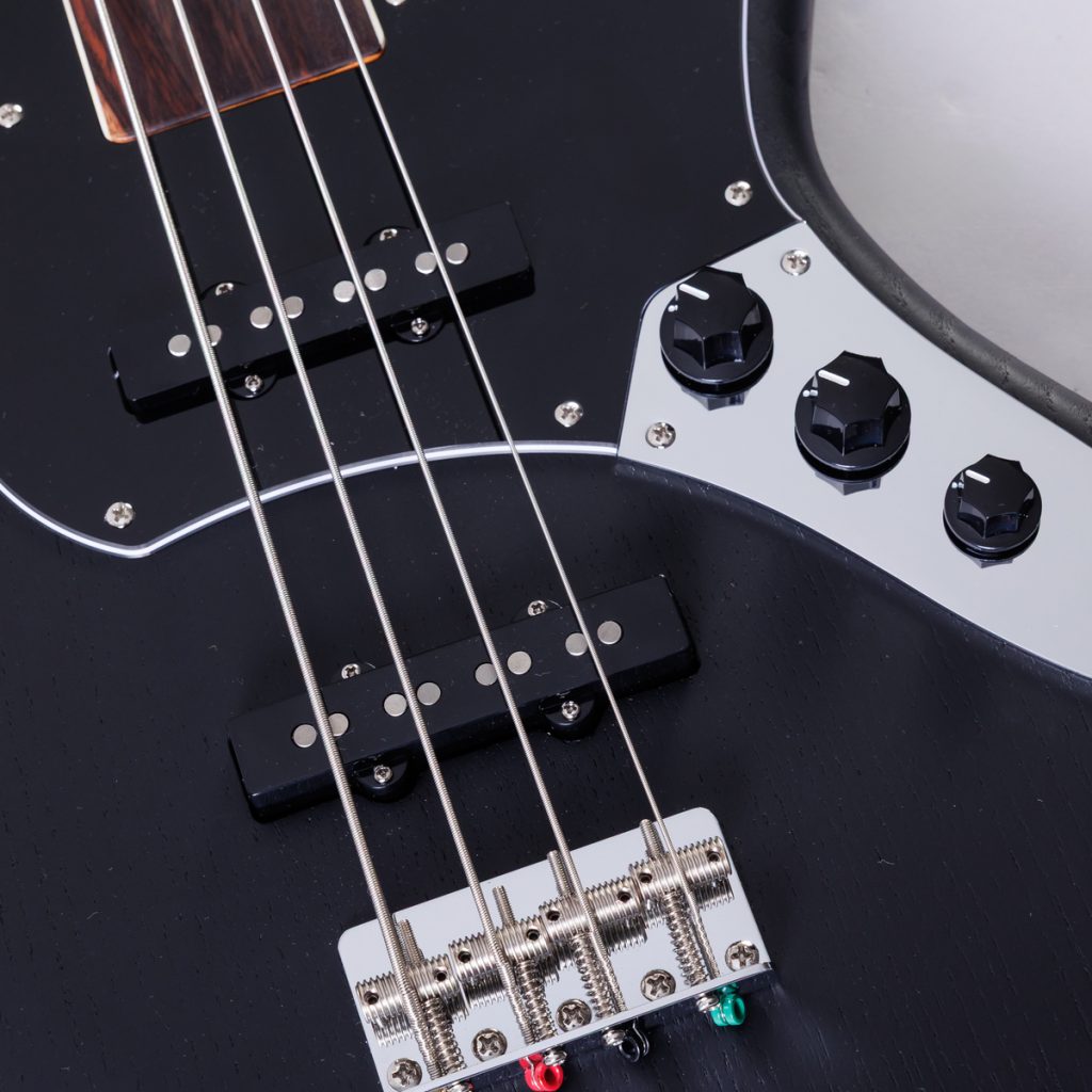 P-Jスタイルのピックアップを独自のレイアウトで配置。