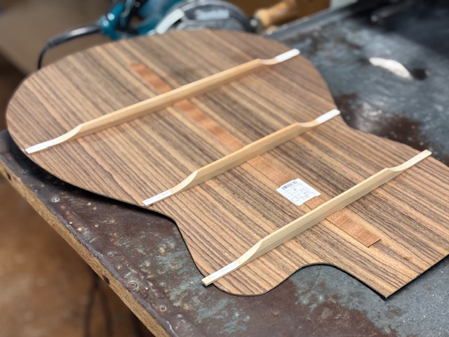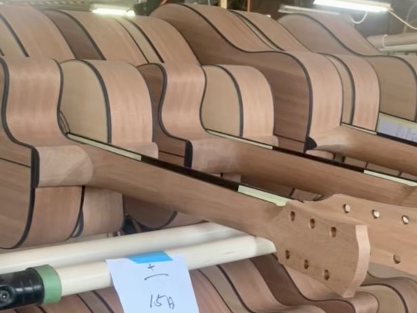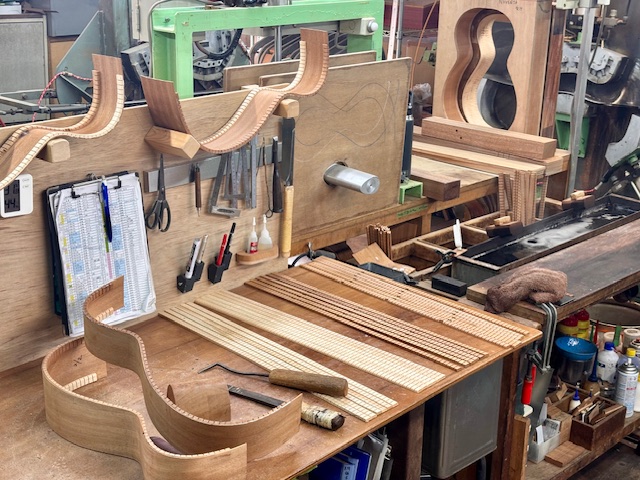 その後、ブロックやブレイシングと共に表板・裏板が膠でしっかりと接合され、一つの「ボディ」が姿を現します。