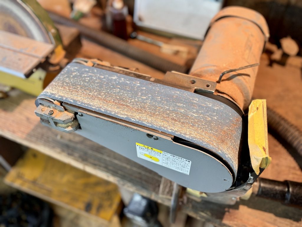 ベルトグラインダーはネックの平面出しや内側のカーブ(内R)の成形など、広い面や曲面をならしていく作業に適しています。
