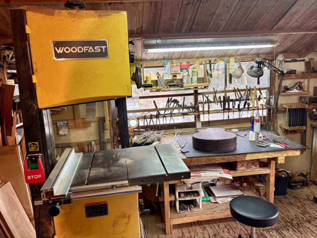 コンパクトな卓上モデルで、狭い工房スペースでも扱いやすく、厚みのある材の挽き割りから曲線加工まで、ギター製作に必要なさまざまなカット作業に対応できます。
