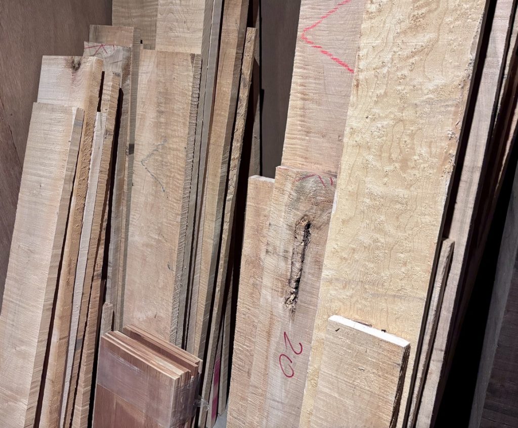 ほかにも古いイングルマンやジャーマン、ご要望によってはアディロンダックを使うこともありますが、一番大事なのは“信頼できるルートで仕入れた良い材であること”だと考えています。」