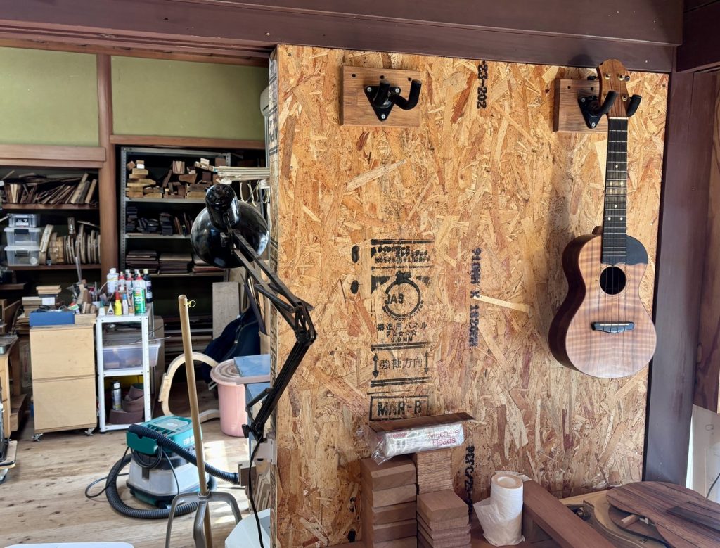 現在は京都の工房を拠点に、年間 8〜10 本ペースでギターとウクレレを製作するとともに、国内外さまざまなブランドのリペア・調整も手がけている。