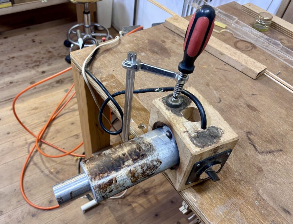 ボディの組み立てやパーツの貼り合わせなど、弦楽器製作のあらゆる場面で多用される、欠かせない固定用工具です。