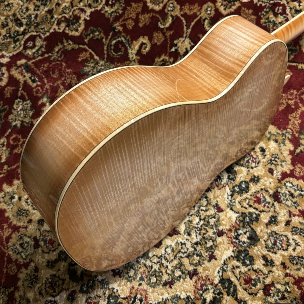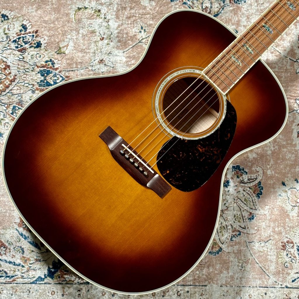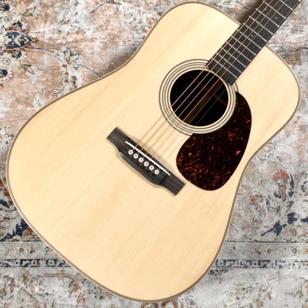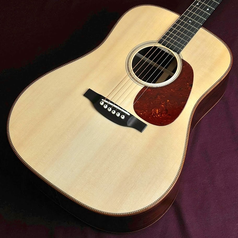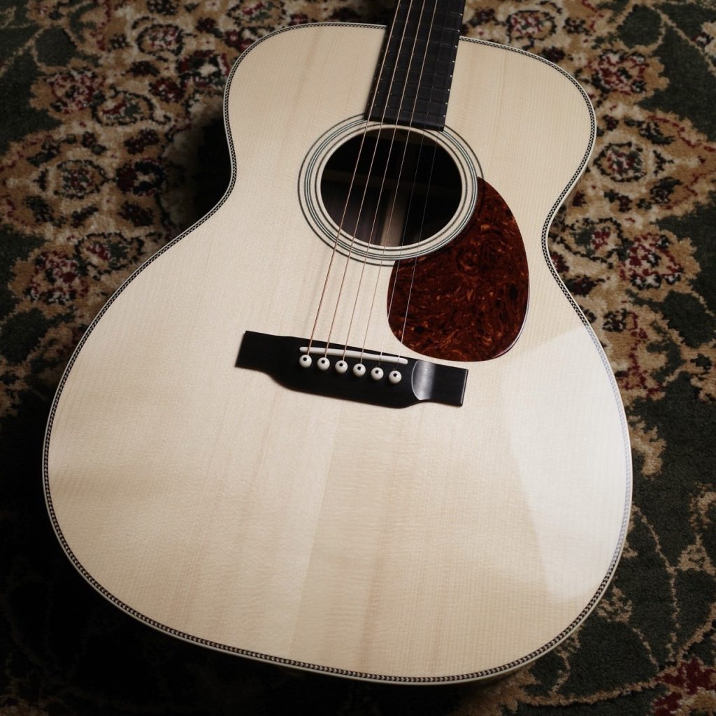 Martinカスタムショップのプレビルドカスタム現地買付品。トップ材には認定ユーロスプルースを使用し、高い音響性能を持つパシフィック ビッグ リーフ フレイムメイプルがバックとサイドを彩ります。
