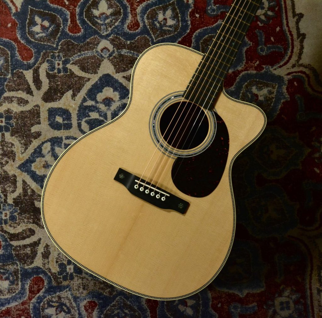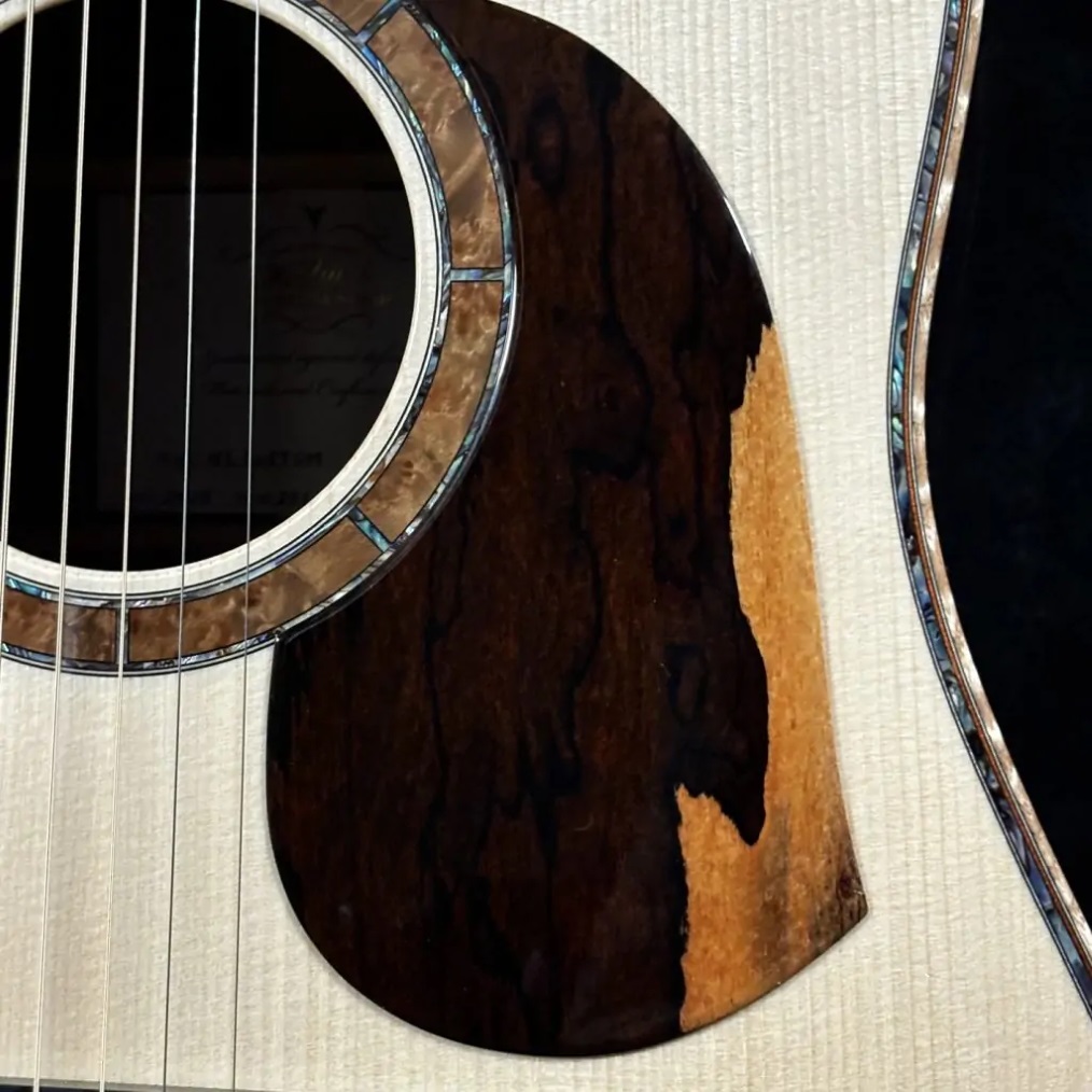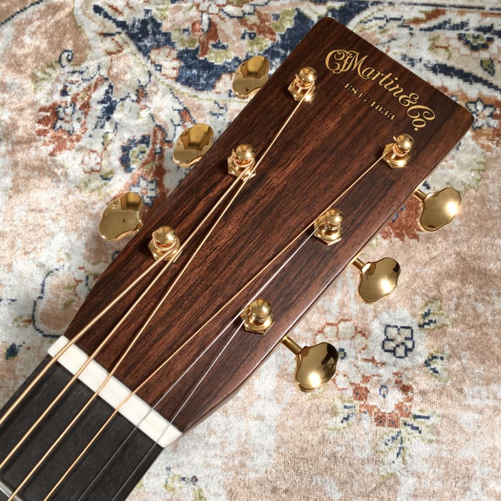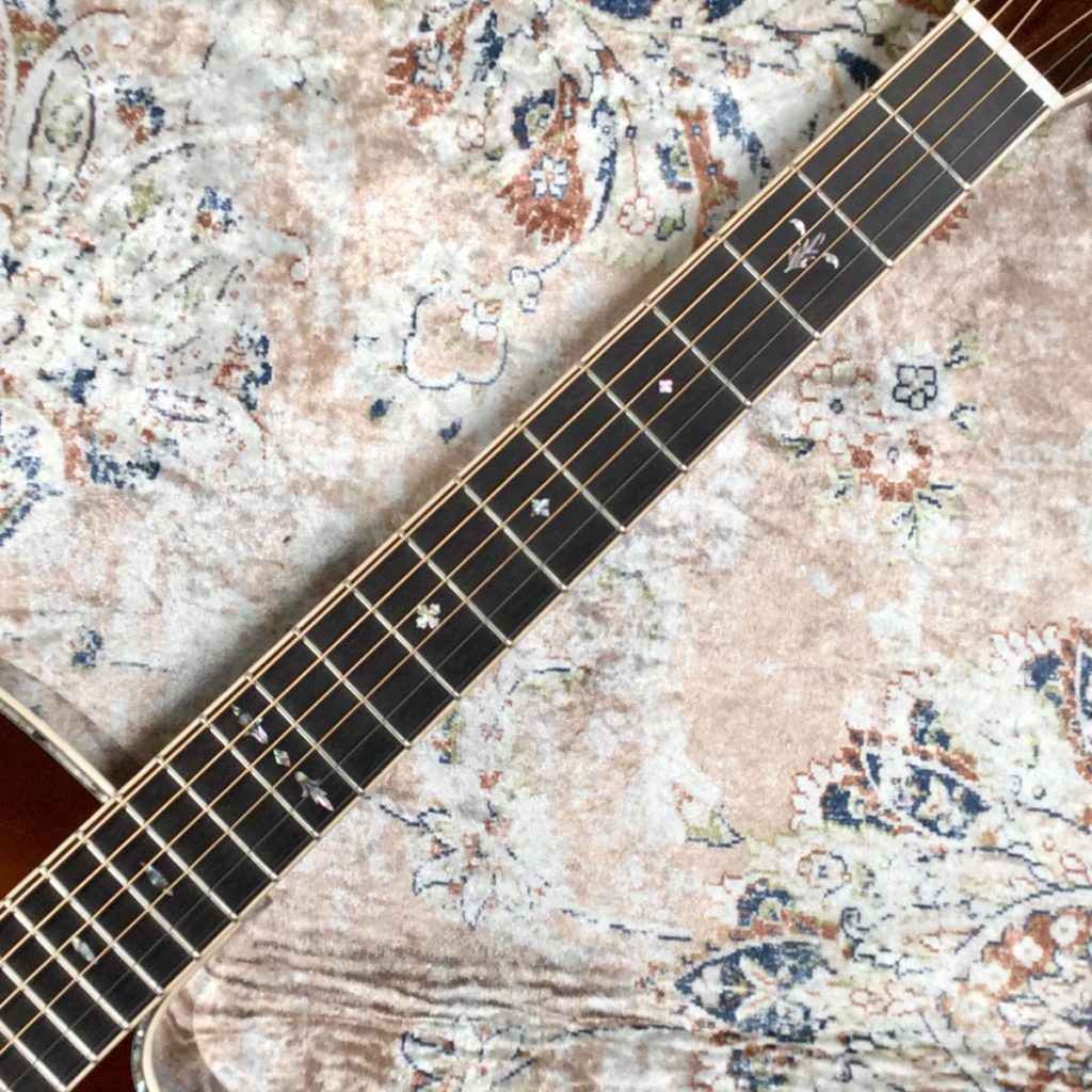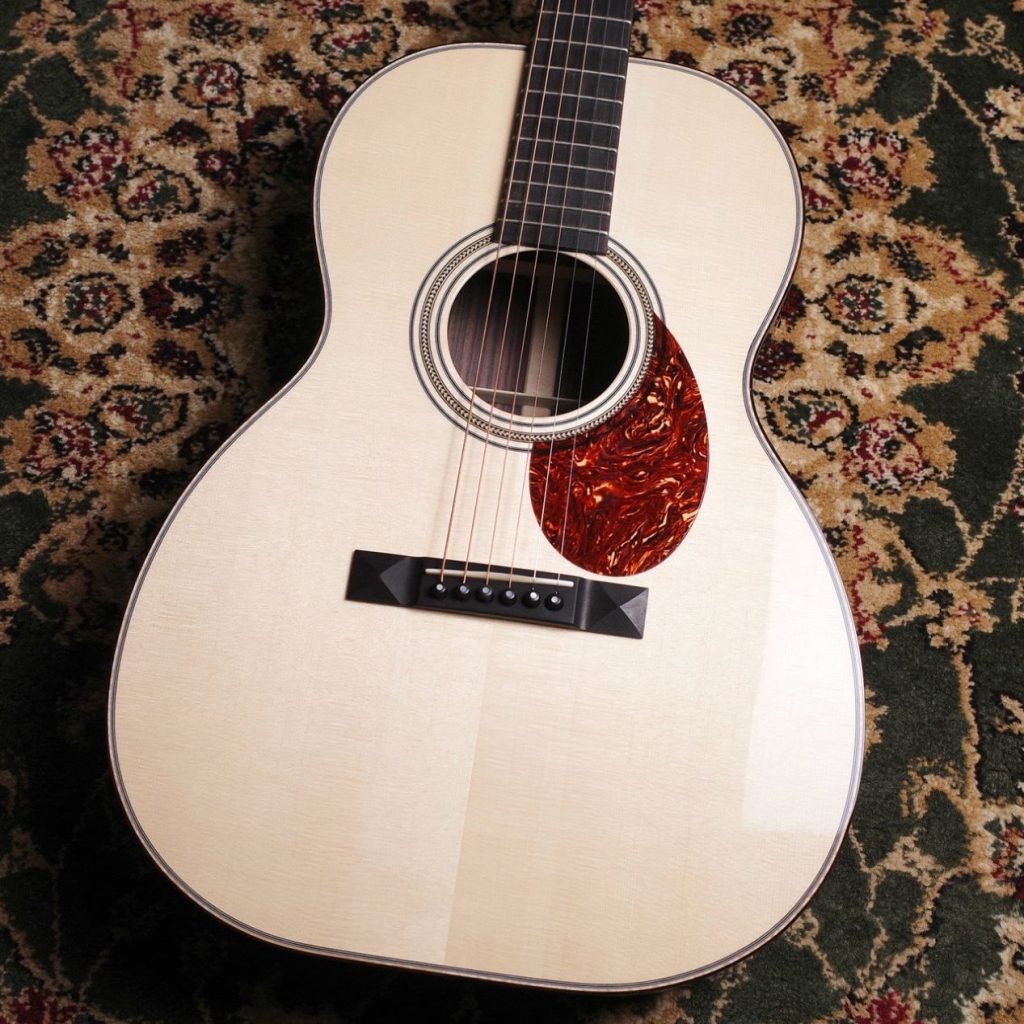 Martinカスタムショップのプレビルドカスタム現地買付品。トップ材には認定ユーロスプルースを使用し、高い音響性能を持つパシフィック ビッグ リーフ フレイムメイプルがバックとサイドを彩ります。