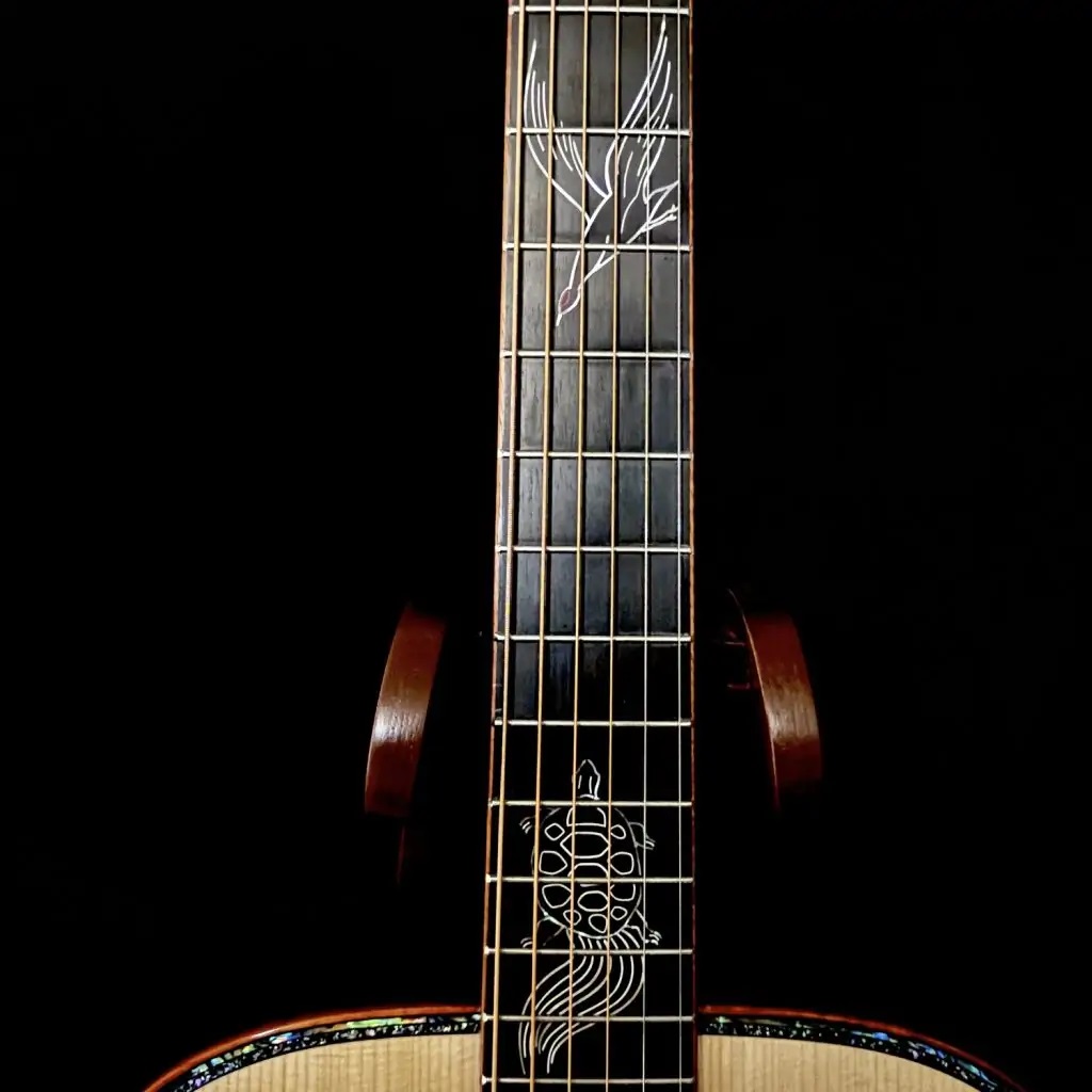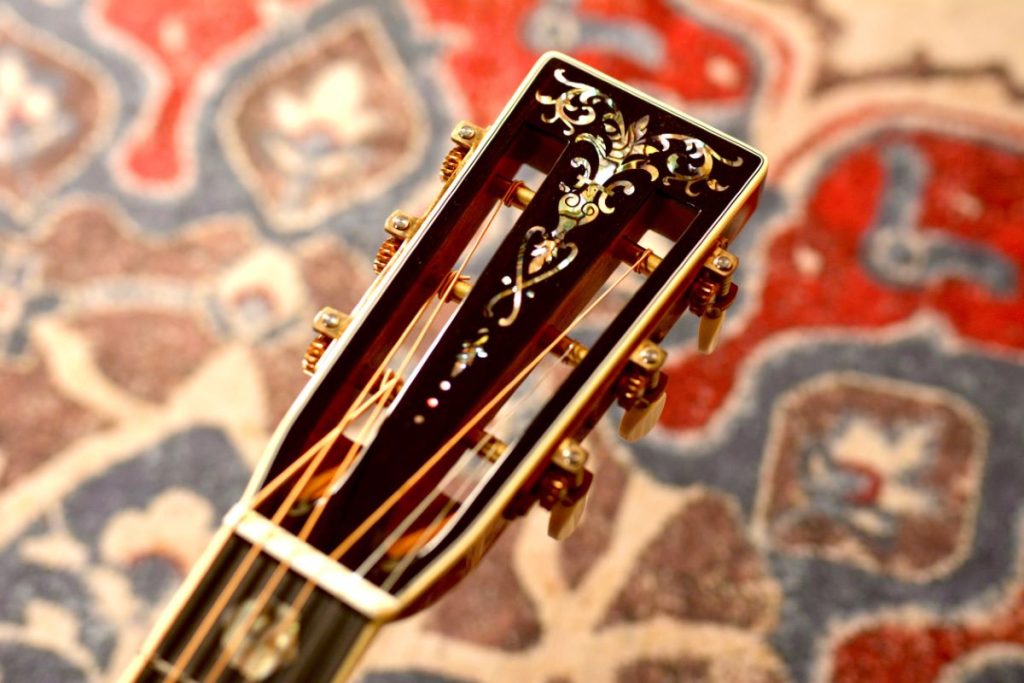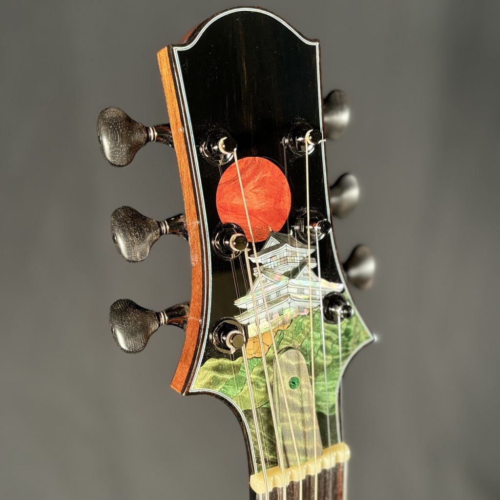 日本屈指のルシアー増田明夫氏が手がける『Water Road Guitars』。日本古来の城を照らす満月のモチーフが施され、まさに唯一無二の「Moonlit Castle」はまさに芸術品。