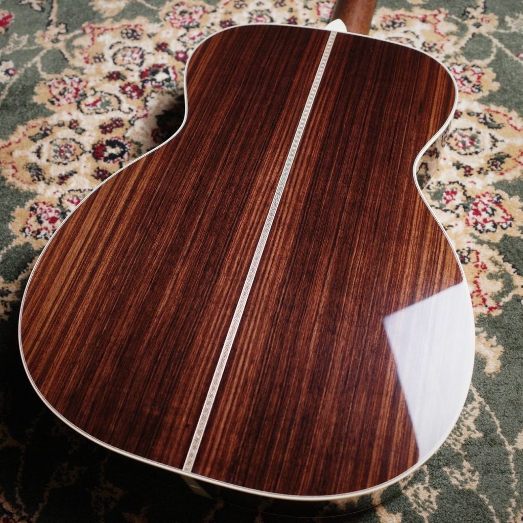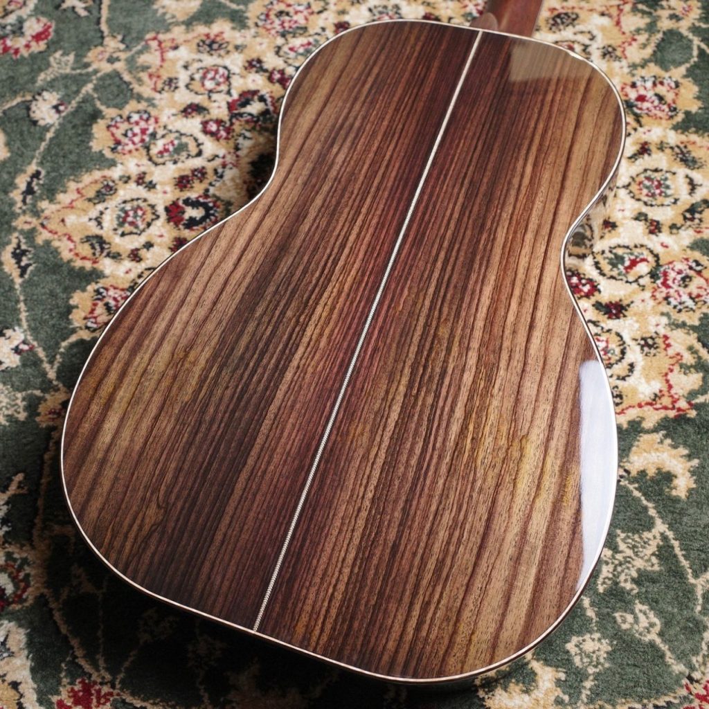 京都府京丹波町に工房を構えるルシアー、西原悠貴氏による珠玉の一本。深い胴厚を採用した000ボディサイズ、645mmスケールを採用し、サウンドのバランスとボリュームを高い次元で成立。