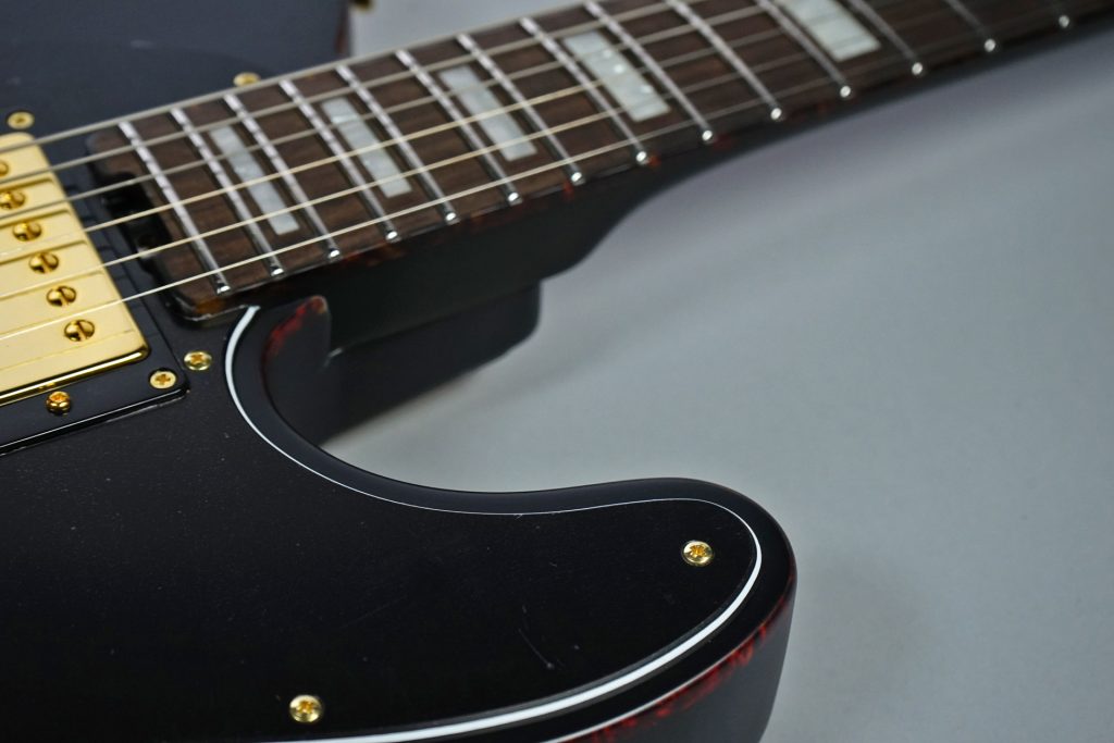 PTは1970年代のシェクター創世期からあるテレキャスタータイプのモデル。中でも2ハムバッカー仕様のものはピートタウンゼントの使用でも知られます。今回はこちらにレスポールカスタムのようなルックス、サウンドを目指したカスタマイズを施しています。