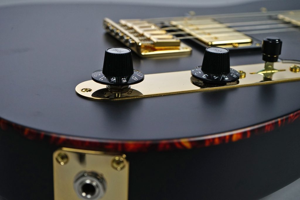 ボディはもちろん、ヘッドトップ、ネック裏までマットブラックで統一。コンポーネントギター感は薄れますが、やはり高級感がありますね。