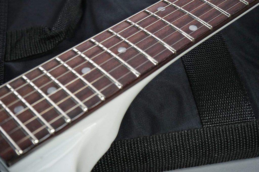 フレットの仕上げ一つとっても、こだわりを感じるクオリティです。