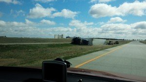 なんと途中5台も、横転したトレーラーに遭遇!!