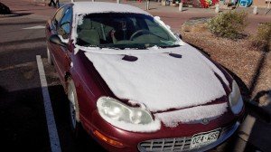 5月だったのですが、ご覧のように、郊外に出ると植木や駐車された車にはうっすらと雪が。