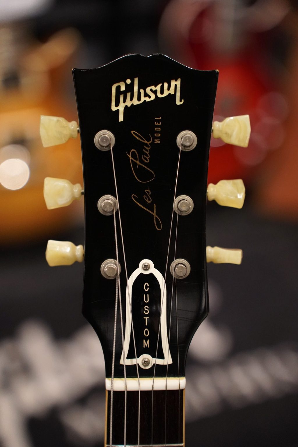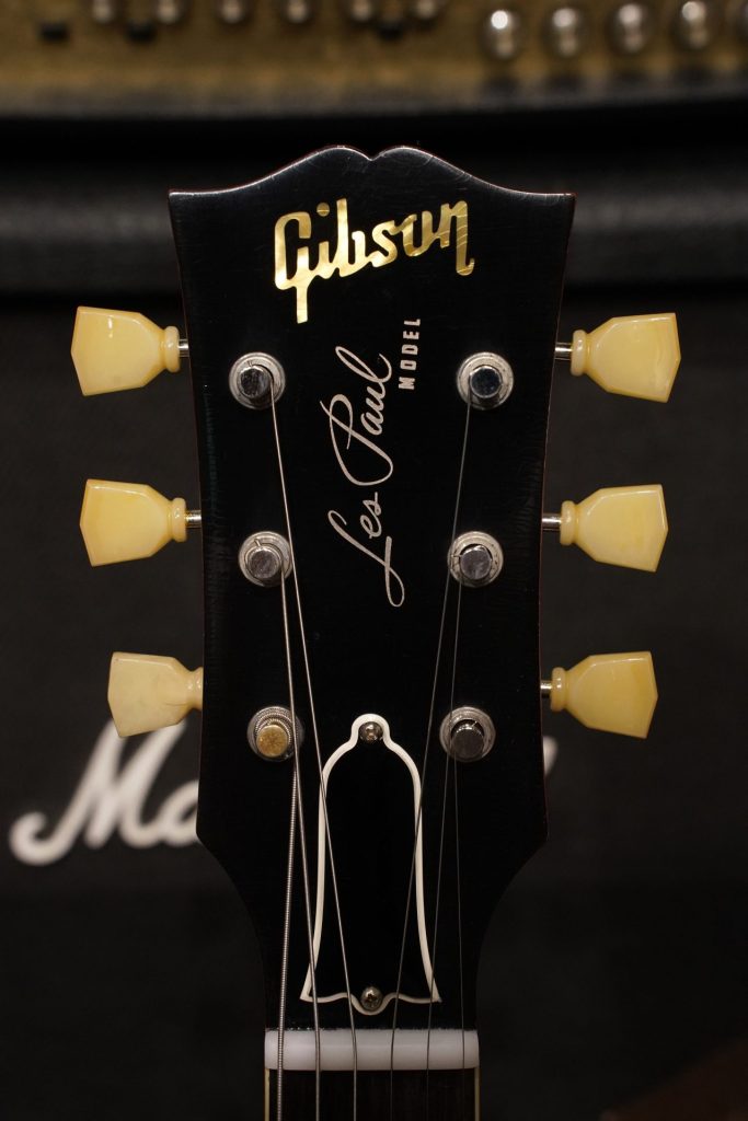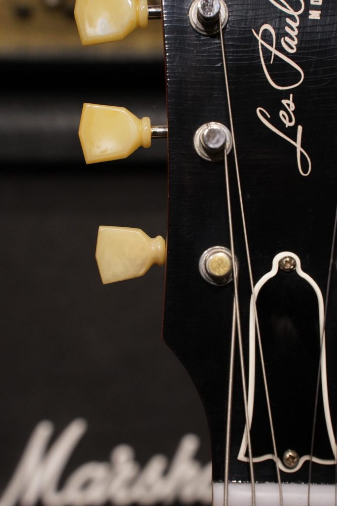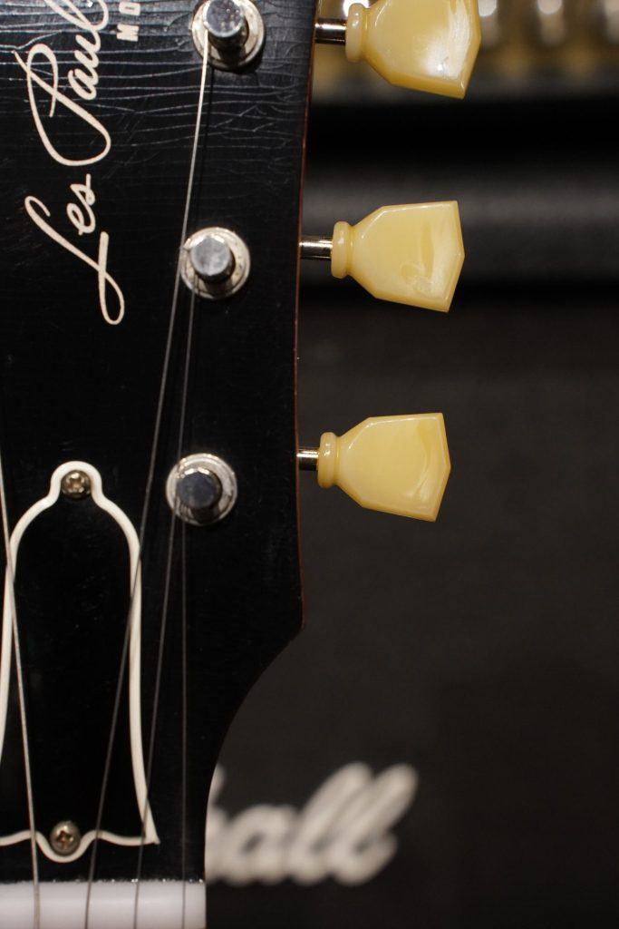 画像はマーフィーラボ(2025年製)の1959レスポール・スタンダード・リイシューのヘッドストックです。現行品と比較し易いように一つだけ1950年代のクルーソンにしてみました。ご説明差し上げるまでもなく、6弦のチューナーだけ違うことが一目見ただけでお分かりになると思います。