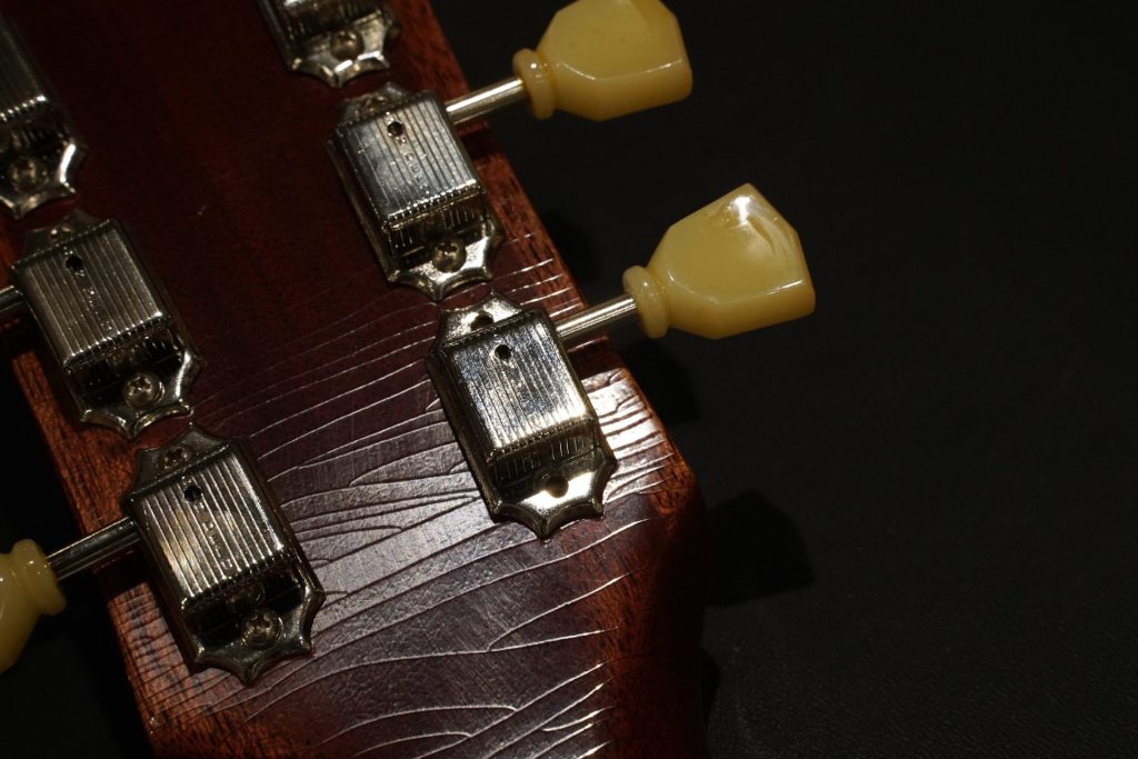 コリーナのフライングVは1958年に発売され1959年まで製造されましたので、出荷時にはシングルリング・シングルラインのクルーソン・チューナー(ペグ)が搭載されていました。