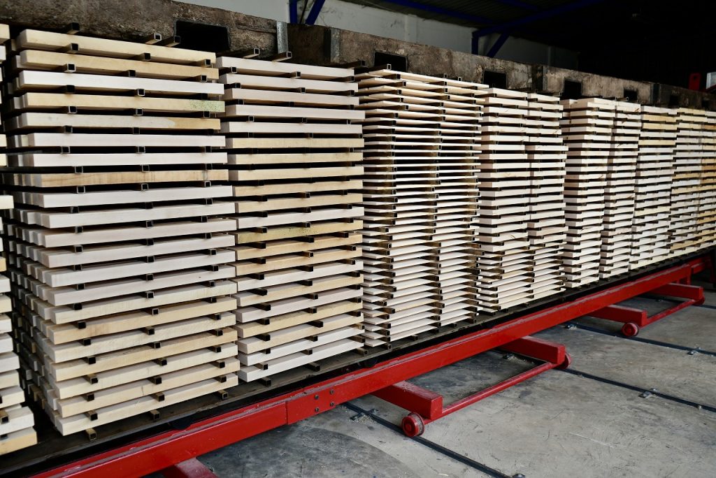 木材の乾燥工程から最終的なクオリティチェックに至るまで、PRS 本社が100%密接に関わり、仕様・許容値・検査基準を細かく共有しながら生産をコントロールしています。